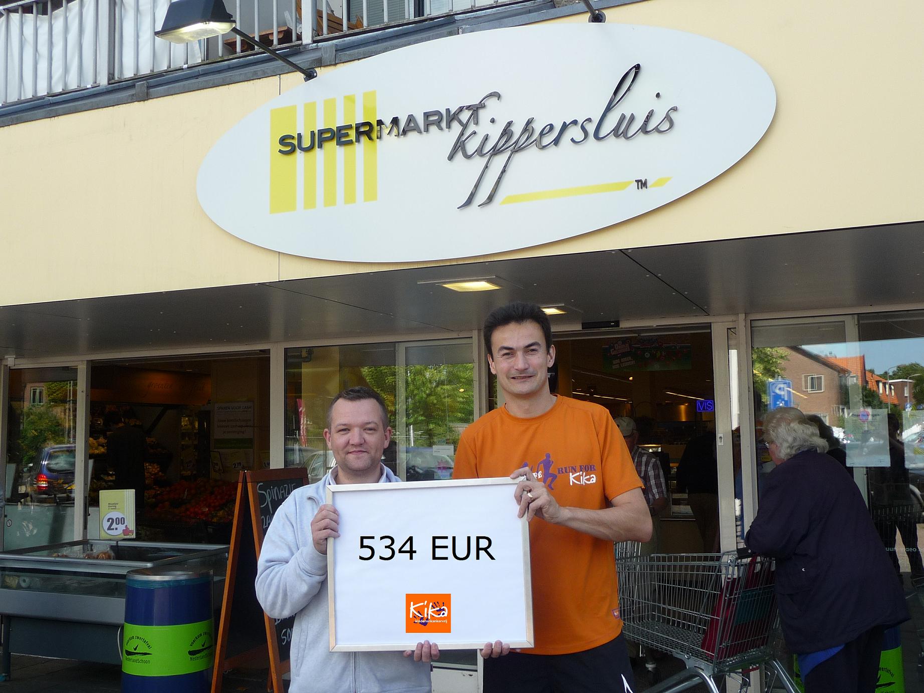 Vanaf april heeft Supermarkt Kippersluis in Amersfoort geld ingezameld voor KiKa, stichting Kinderen Kankervrij. Vele klanten van Kippersluis hebben hun statiegeldbonnen in een oranje zuil gedaan. Initiatiefnemer Ramon de La Fuente gaat op 4 november voor KiKa de marathon lopen in New York en zamelt geld in.