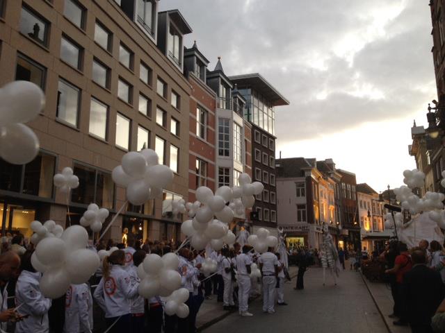 Op naar de winkel in een optocht met feestelijke drumband, elfjes op de lange latten en rolschaatsende babes!