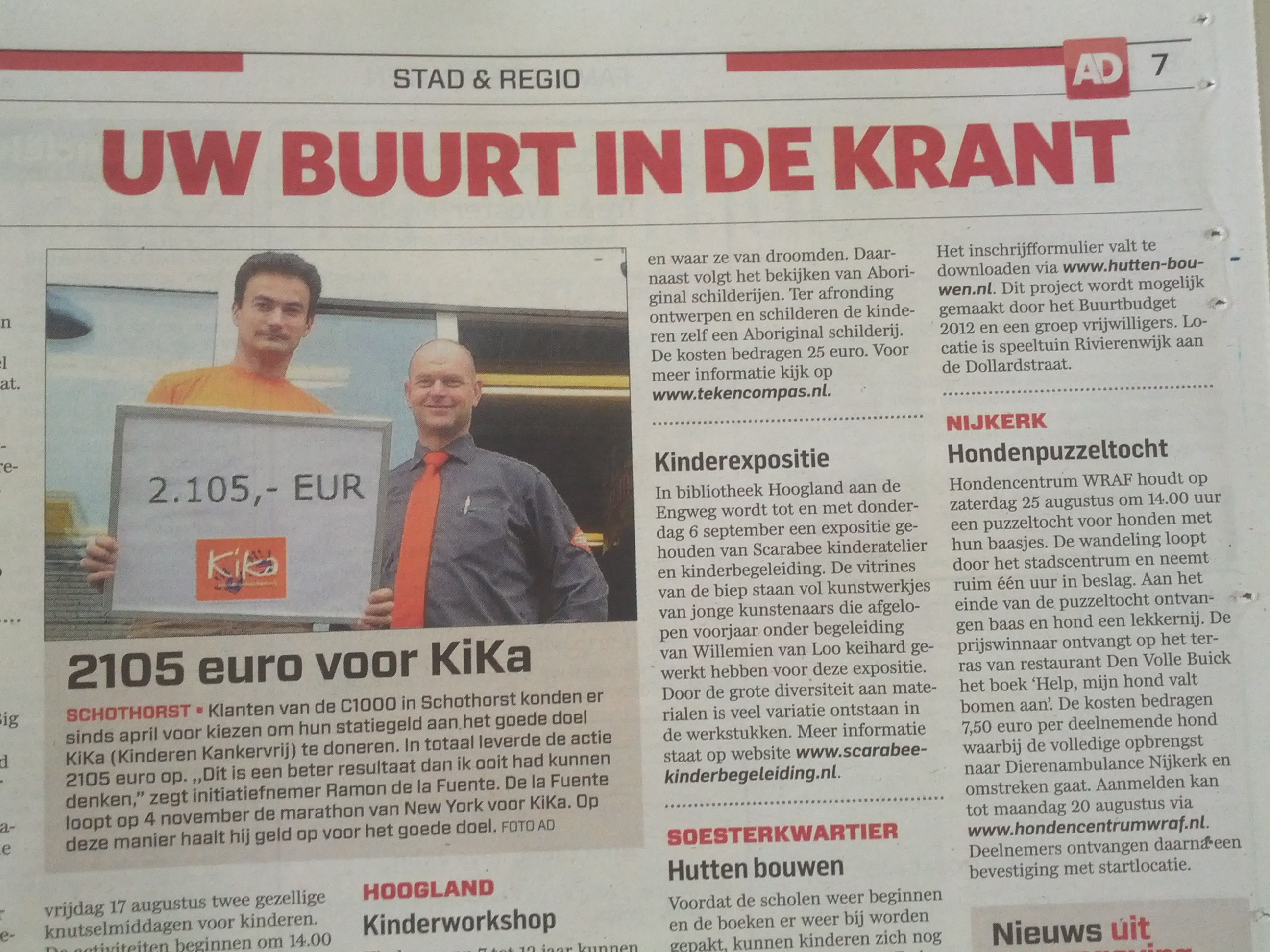 Er zijn inmiddels weer wat leuke stukjes over de Kika actie en mijn marathon avontuur verschenen in de kranten, hieronder een mooie selectie uit de krantenknipsel van Amersfoort, Soest Leusden en Zeist en de opening van de AEX in De Telegraaf. Op de Media pagina worden alle stukjes bijgehouden.