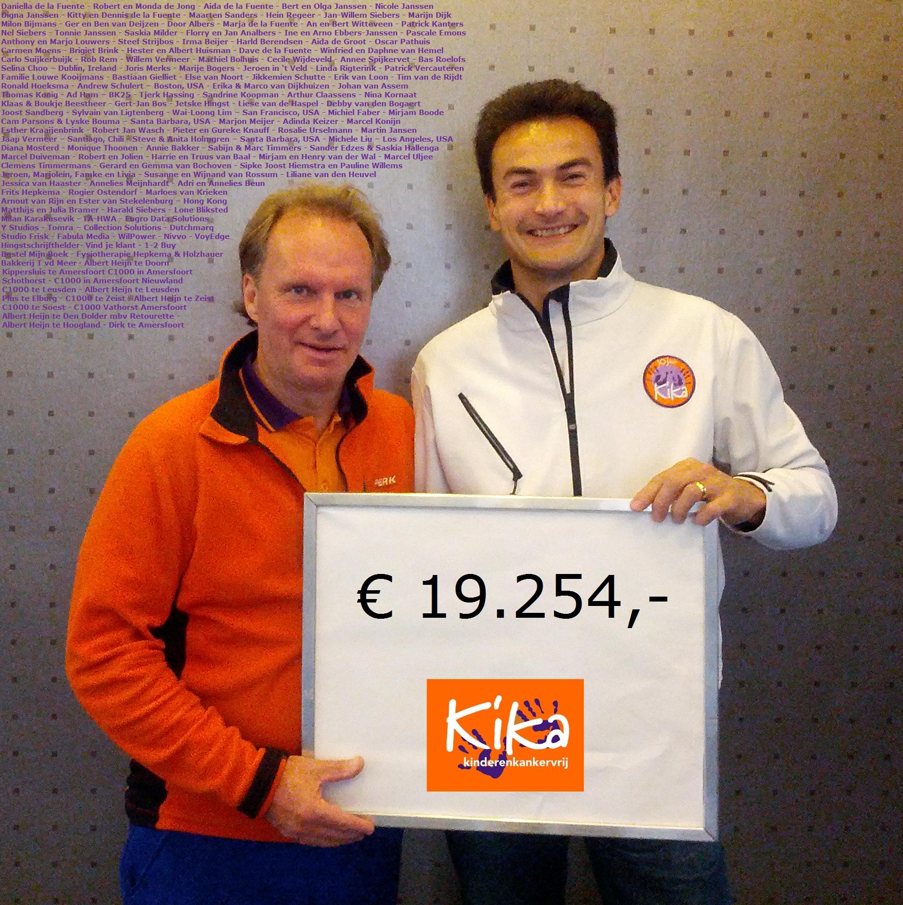 Mijn aanhang hebben zich de laatste dagen van de allerbeste kant laten zien. Veel lieve berichtjes aan deze teleurgestelde loper. Dank je wel, dat deed me goed! Nu de teleurstelling een beetje is gezakt, is het tijd om de balans op te maken. Is mijn New York marathon avontuur mislukt? Nee, ik heb wel een sportief onvoldaan gevoel MAAR het is heel anders verlopen en is in een ánder opzicht helemaal geslaagd. Ik heb door jullie steun 19.254,- EUR bijeengebracht voor KiKa, ver boven al mijn verwachtingen! Oprichter en directeur van Kika Frits Hirschstein heb ik in Philadelphia met het befaamde bord het geld symbolisch overhandigd.