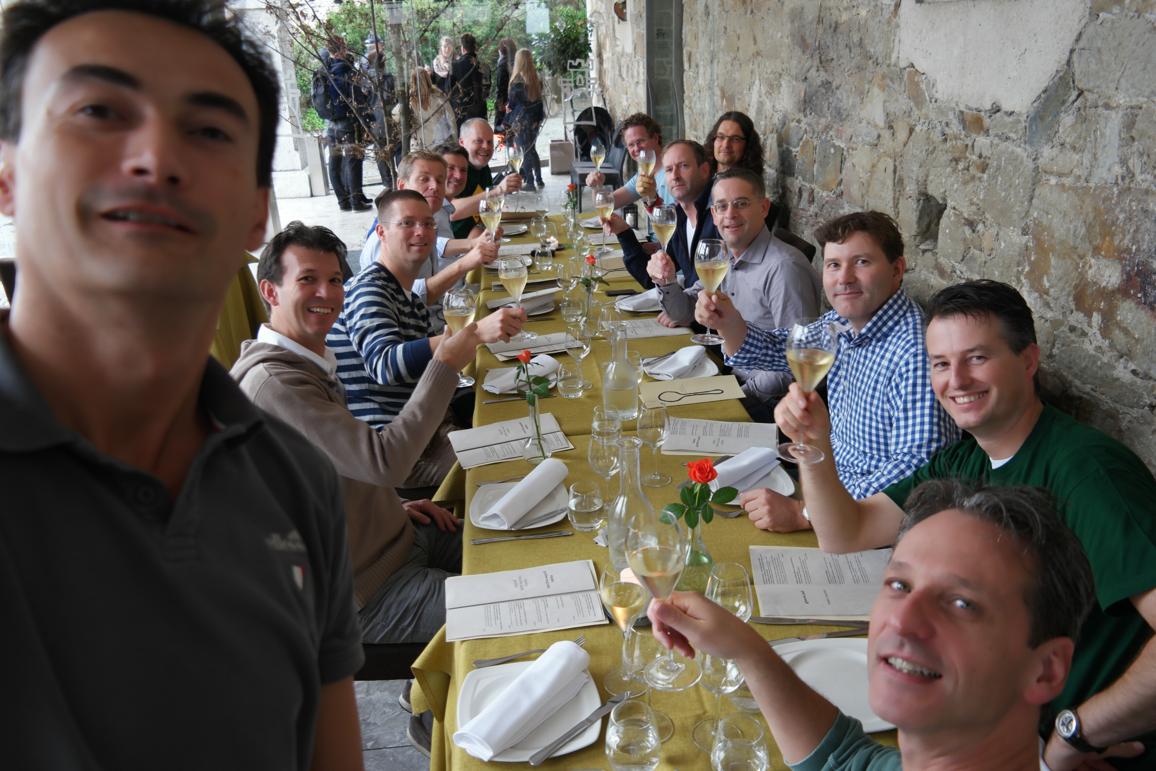 De eerste dag in Slovenië was mooi. Gelijk een lekkere wandeling naar Ljubljanski Grad (Grad=kasteel), een middeleeuws achitecturaal monument, staande op de Kasteelheuvel en we hadden daar een goede lunch met de eerste glazen wijn.