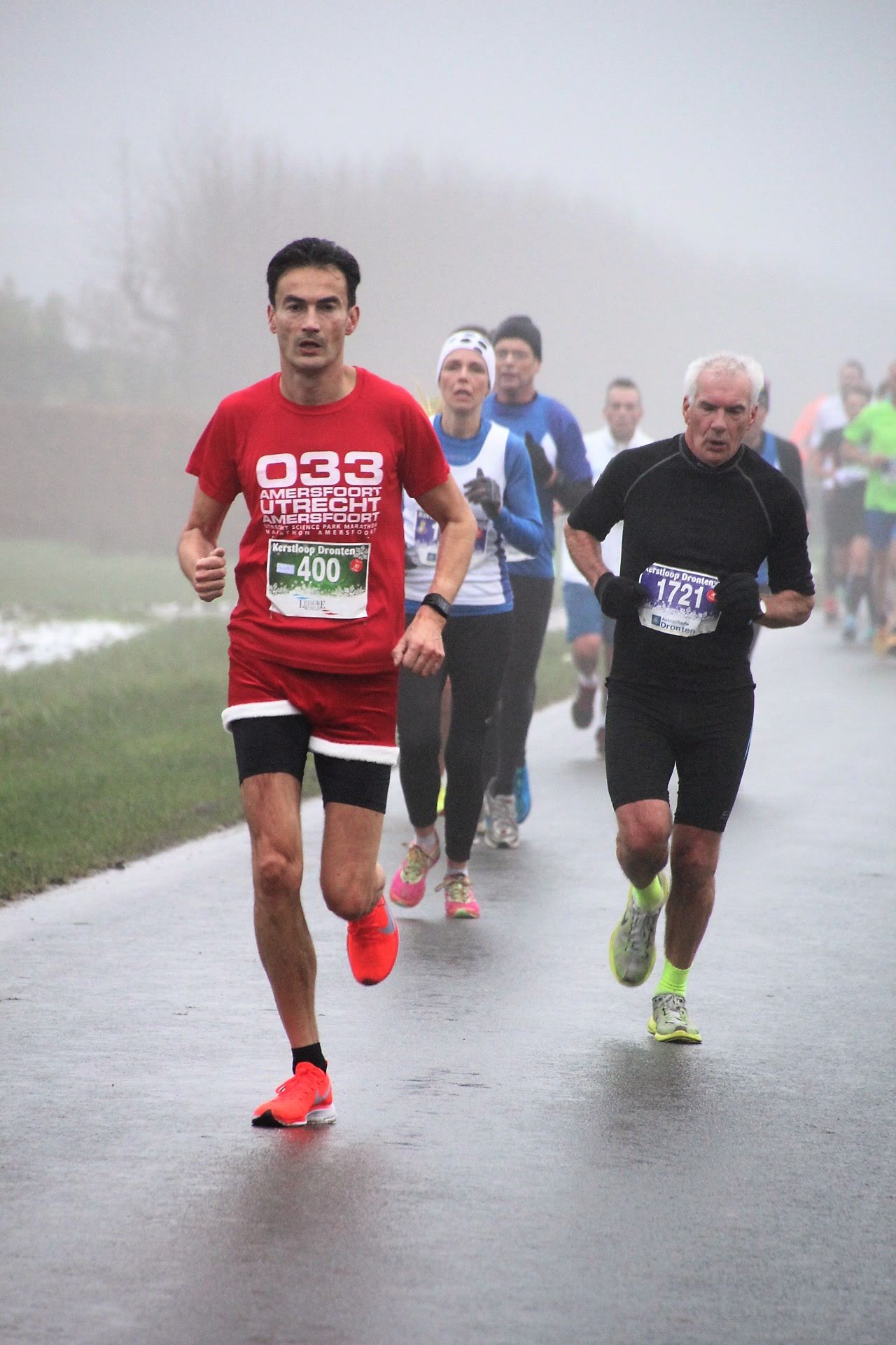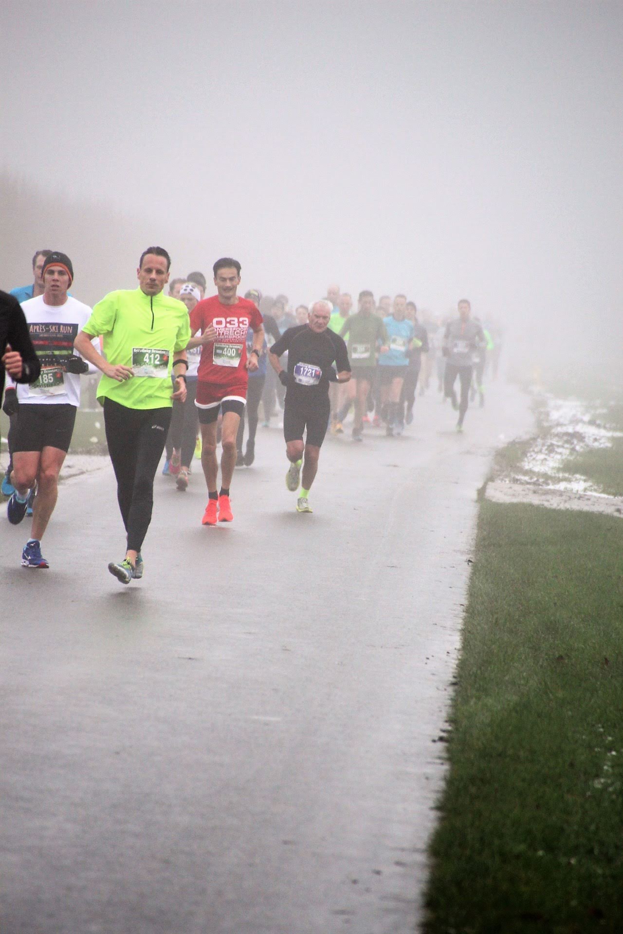 De weersomstandigheden waren ideaal voor een hardloopwedstrijd op zondag 16 december. Het was koud – rond de 3C – het was bijna windstil het was alleen erg mistig en dat veroorzaakte een lichte motregen. Bij de start kon ik redelijk vooraan staan en had me voorgenomen om de eerste kilometers te kijken welk tempo goed beviel.