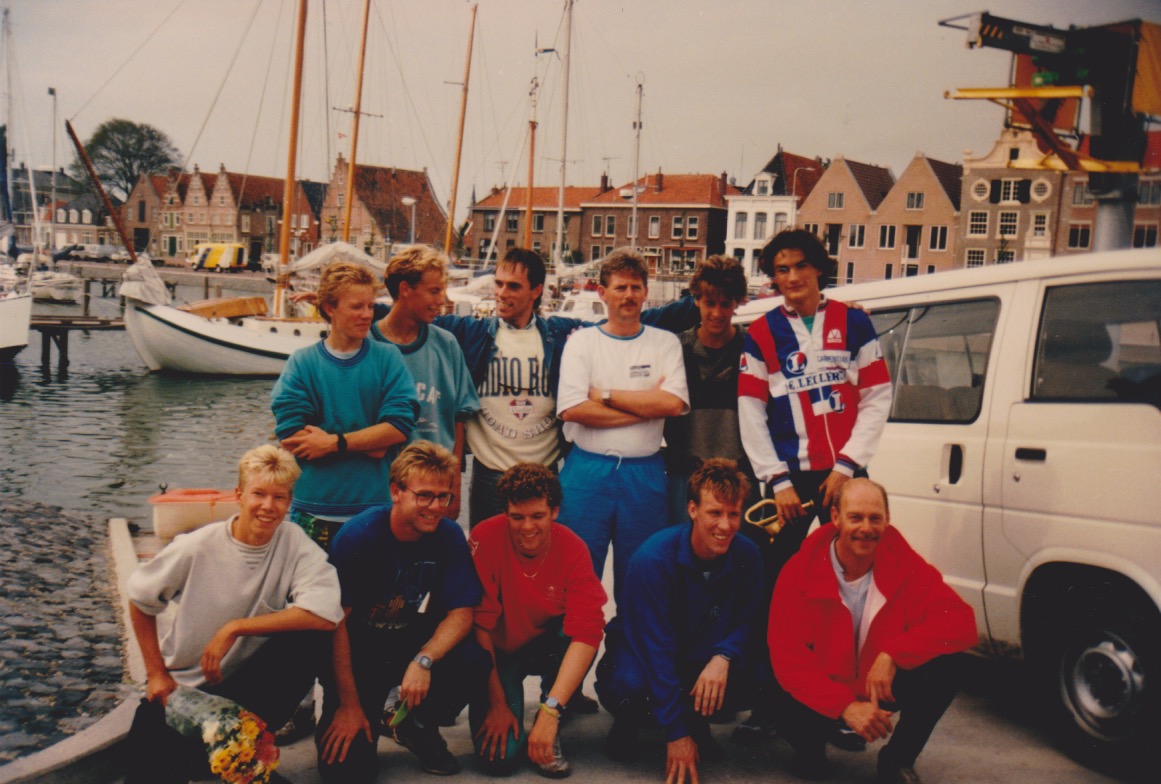Ik was ongeveer 2 maanden ervoor gevraagd door mijn gymleraren of ik zin had om – geheel vrijwillig – mee te doen aan de 310km versie. Blijkbaar had ik toegezegd. Er was echter een probleem: ik was geen hardloper, ik speelde tafeltennis. Wist ik veel!? Deze uitdaqing leek me wel leuk! Ik had geen idee wat het betekende om totaal bijna 40km te lopen en kan me niet herinneren dat ik ervoor had getraind. Voor school moest je 1x per jaar de Coopertest lopen. De bovenbouw van de school liep – de door scholier gehate – Polderloop. Dat was mijn hardloopervaring. Ook Maarten Elout – die hierboven op de foto naast me staat in een zwart shirt – had geen hardloop achtergrond.