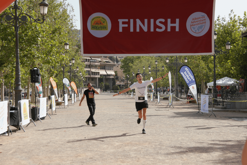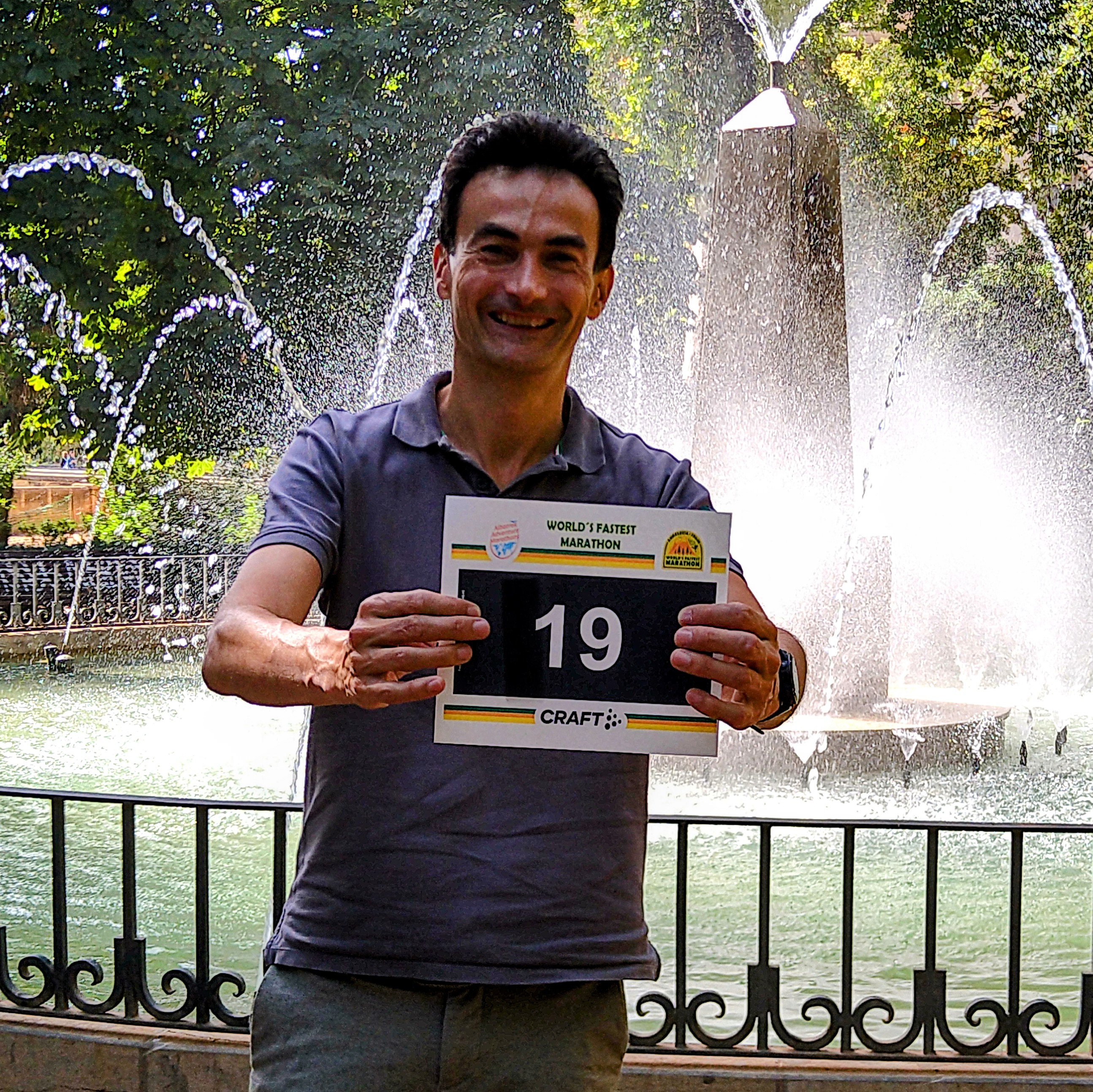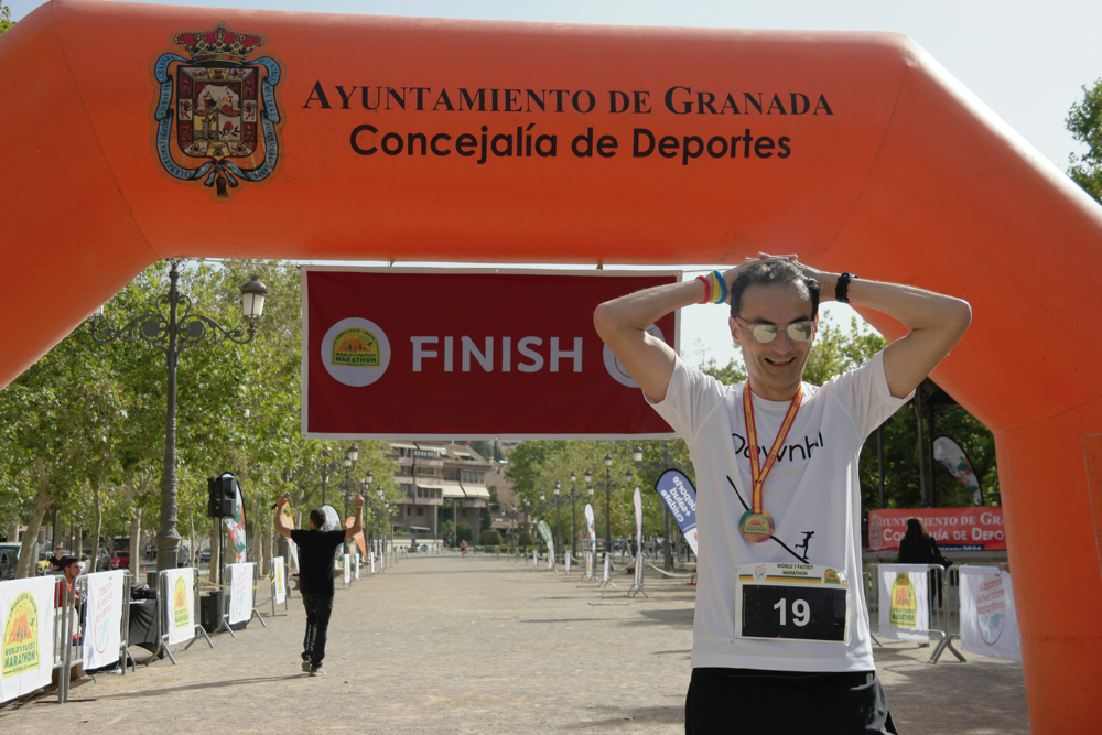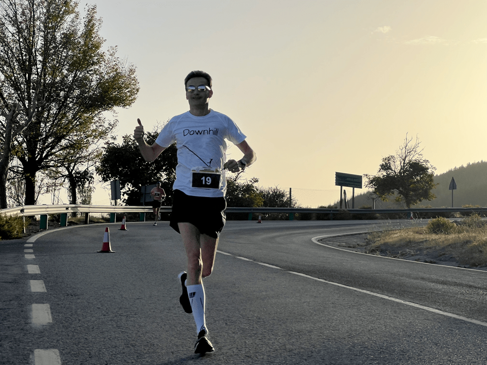Vamos Ramon! Bij de World’s Fastest Marathon gaat de hele route bergafwaarts en ik ben er heel trots op dat ik deze marathon heb uitgelopen. Het is echt uniek! De start is vlak boven een stadje in een ski-gebied in Sierra Nevada, Spanje. Vanaf daar ga je van 2.600 m hoogte afdalen naar Granada op 700 meter hoogte. Gemiddeld een daling van 4.6% en totaal daal je 1.938 meter.